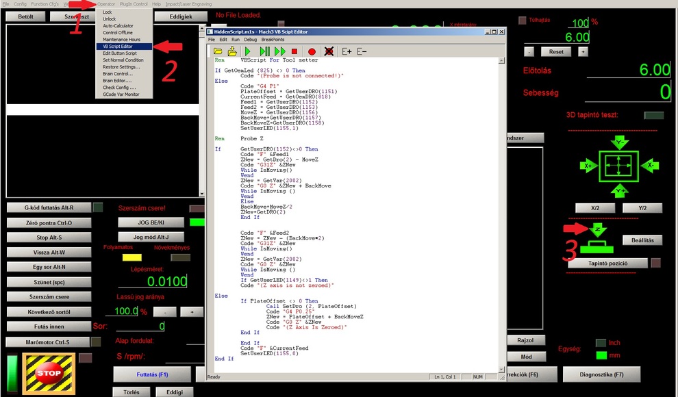 A beállítását ennek az Operator menü alatt a Edit Button Script alatt lehet először kiválasztani aztán az adott gombra rányomva átállítani. (PL szerszám bemérésnél a Z visszaemelés)