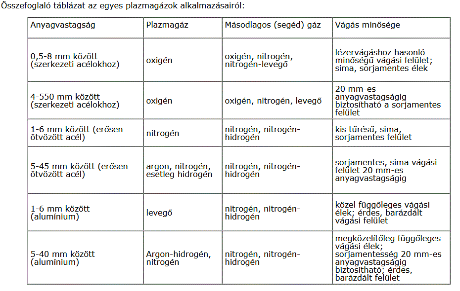 Létezik olyan táblázat ami segítséget nyújt ahhoz, hogy hányas lemezhez milyen fúvókát, milyen előtolást , milyen áramerősséget érdemes használni?[#conf]