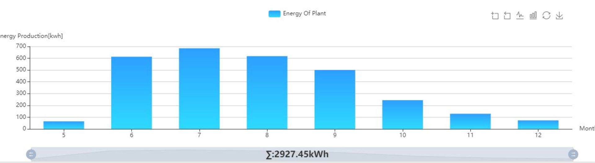 Nekünk 15 db  tábla van a tetőn (3 fázisú rendszer). Mi sem bántuk meg. Május végén lett felrakva, ezért olyan karcsú a májusi termés.