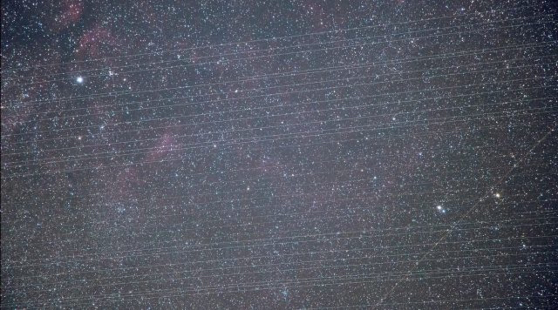 "A Hattyú csillagkép területéről 2019. december 26-án kora este készült öt darab kétperces felvétel egymásra rétegelve. A fehér csíkok több tucat fényes pont (a Starlink műholdak) áthaladását örökítették meg. (A felvételt készítette: Fejes Zsolt amatőr csillagász)"