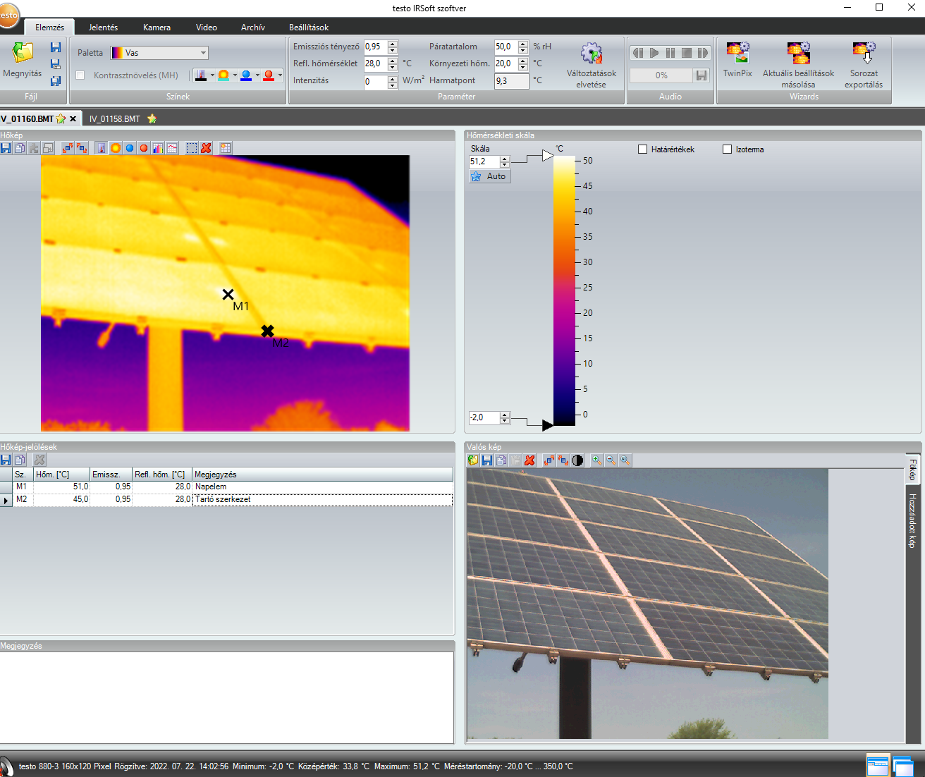 Ezt a mérést így nem tudod elvégezni, csak ha leállítod a termelést egy időre, megméred a tábla hőmérsékletet, majd beindítod, ismét megméred. És ezt megismétled jópárszor, több nap, mivel jelentősen befolyásolja a mérést a környezet (nap állása főként) aztán lehet elemezgetni.. szóval engedd el.