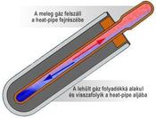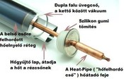 Ezekbe a csövekbe nem megy bele a felfűtendő víz. A tetején lévő gyűjtőcsőben kering, ott veszi át a meleget. A csövek végén lévő vastagabb rész megy bele a gyűjtőcsőbe, ott történik a hőátadás. A két folyadék nem keveredik egymással.