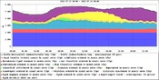 MAVIR napi energia mix diagrammon, ami egy átlagos nyárközepi nap, lila az import, a sárga a naperőművek termelése.