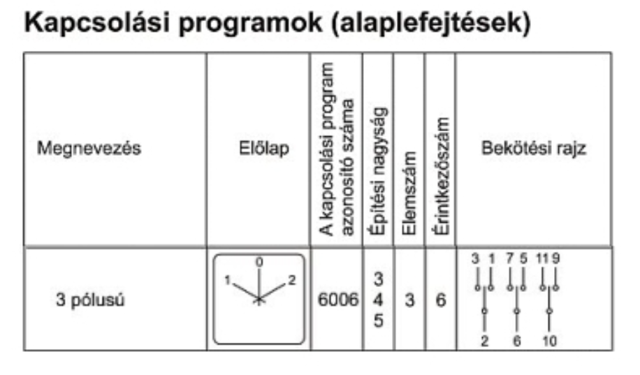 A kapcsoló 2-es állásában zárt érintkezők: 2 - 1 és a 6 – 5 és 10 - 9