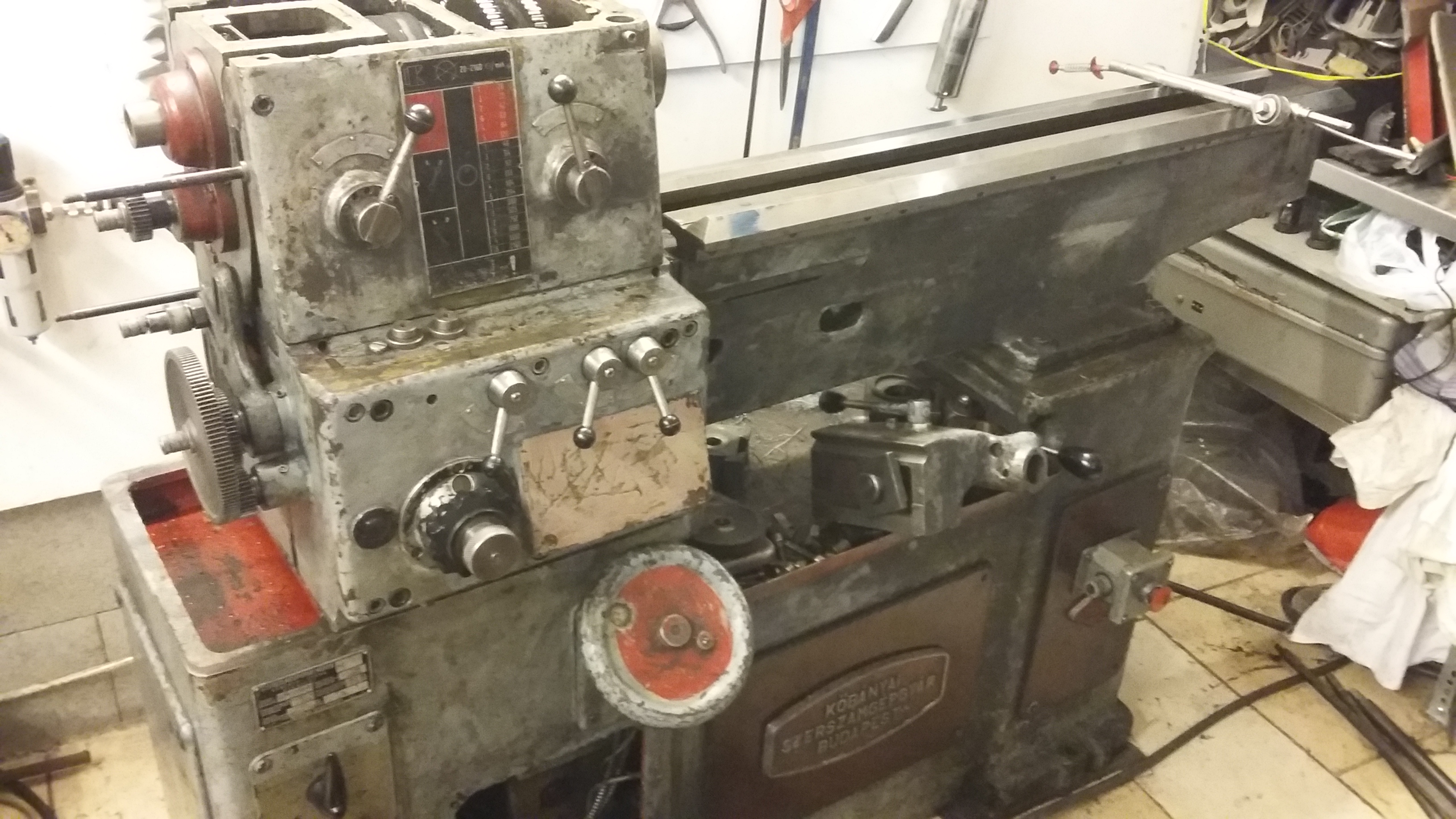 Akkor pár infó: A tartók az orsóház fedeléhez vannak csavarozva ( mert azt könnyű a fúró alá tenni )  A tartórudat az egyik bak fixen fogja a másik csak vezeti. A rúd végén a védő szabadon felhajtható, lehajtva pedig egy ütközőre támaszkodik. A védőt még elöl hátul valami hajlékony darabbal még ki fogom egészíteni, illetve csinálok egy kisebb ívet is mert a legtöbbször az is elég és úgy még kevesebb a kosz. ( Csak ritkán használom a szivattyús hűtést, mert a legtöbb melót vagy szárazon, vagy csak spricniből adagolt emulzióval készítem. )