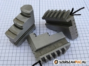 Akkor azt javaslom hogy a pofákba fúrj egy egy hatos körüli furatot szemből. A furatokba dugj egy egy stiftet és azokkal szoríts meg egy gyűrűt. Majd köszörülés helyett egy piros színű forrasztott lapkás késsel esztergáld meg a pofákat tized milliméteres fogásokkal addig míg mindhárom pofán tiszta lesz a felület. ( Fúrógéppel nem lehet köszörülni ( persze kipróbálhatod ha nem hiszed. ) Valami egyenes csiszolóval lehetne próbálkozni, de kár összekoszolni köszörűporral a gépet )