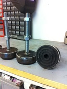 Ilyen gumipogácsát hol tudsz venni? Én 30mm vastag gumilemezt vettem, és abból vágtam ki betéteket, a többi részét hasonlóan oldottam meg, csak önbeálló szárral.