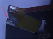 Igazad lehet, talán már a befogó is forgácsolt, és a lapka alá gyűrődő forgács törte el a lapka sarkát.