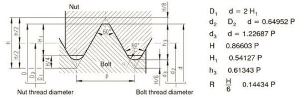 Érdekes ez a dolog, mert a lenti rajzon le van kerekítve a menetcsúcs. A menetet megnézve, mivel a menet oldalafala fekszik fel, majdnem mindegy, hogy mekkora a menet magassága. Nagyobb nem lehet ugye, mert szorulhat, de kisebb szinte akármennyivel (figyelembe véve persze a H magasságot)