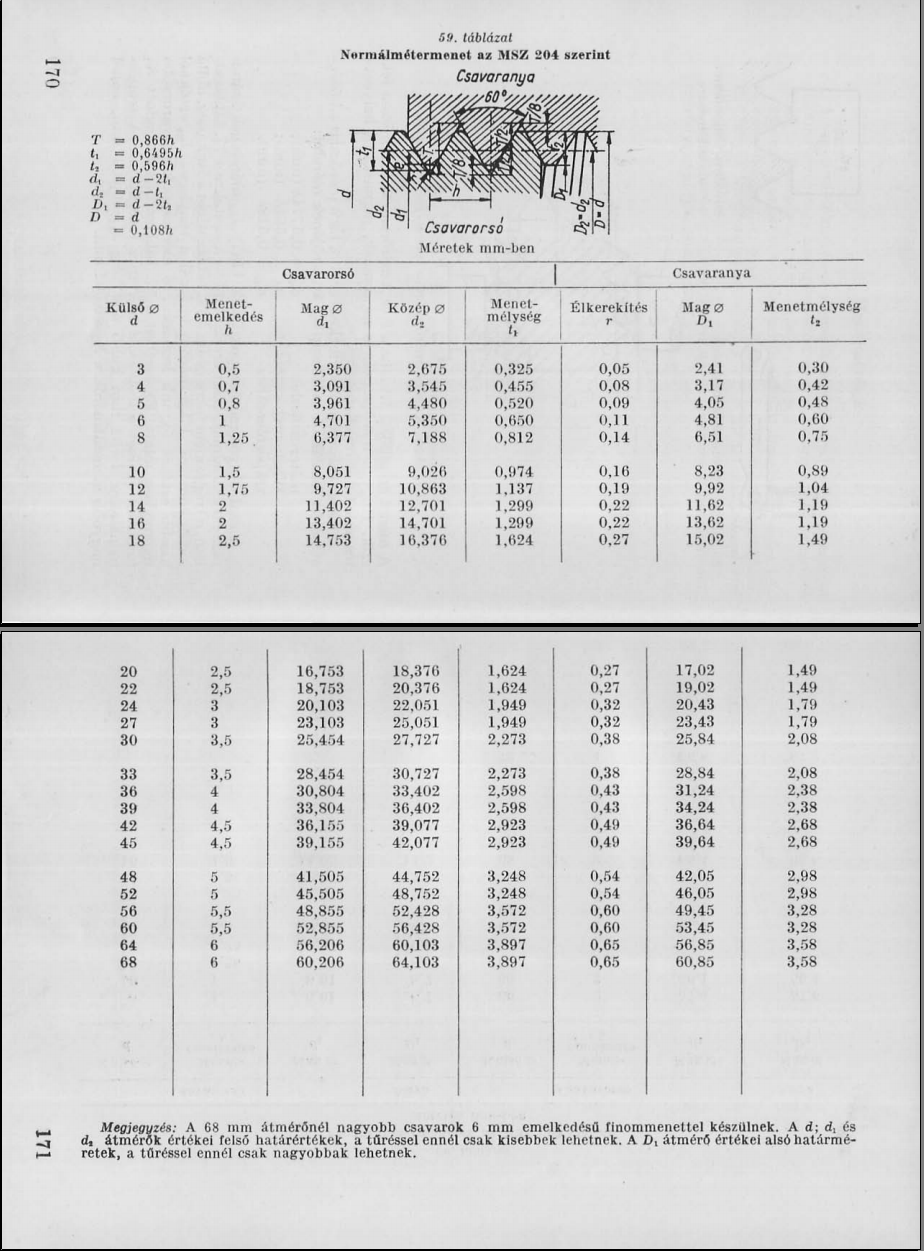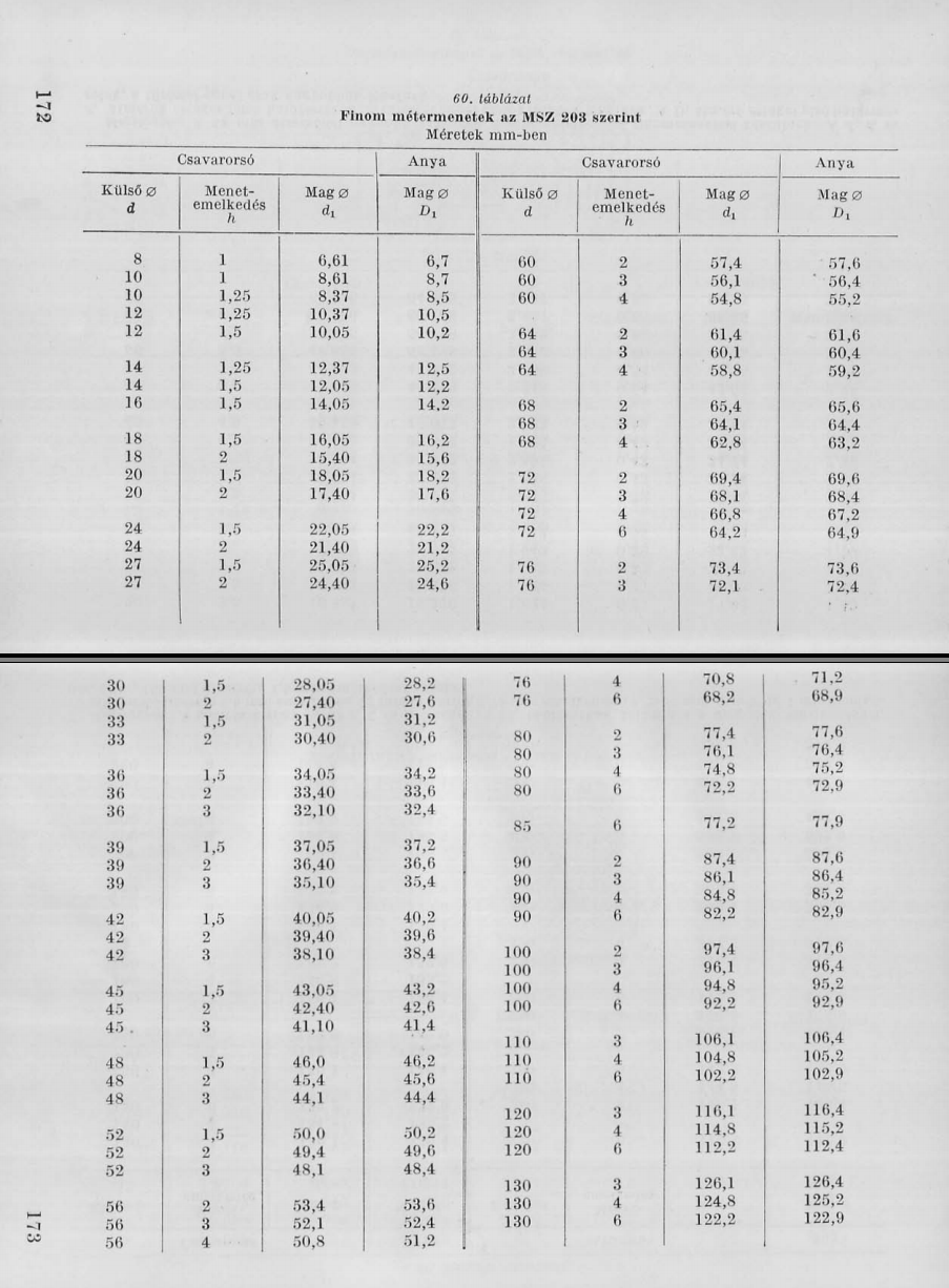 Itt egy kivonat egy esztergályos táblázatos könyvből.