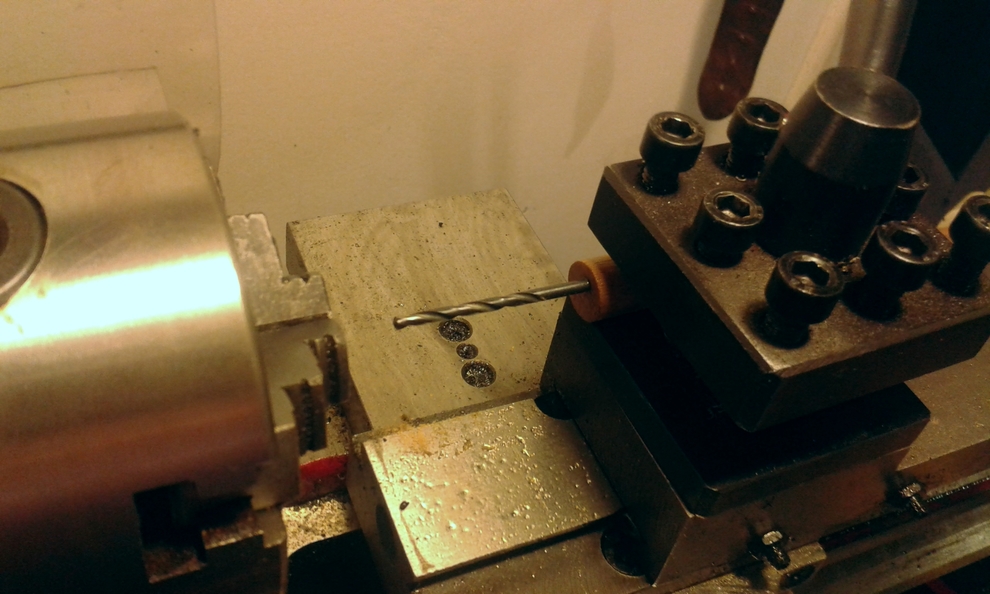 Megközpontoztam az esztergakéssel közben, megcsinálom a késtartóba egy anyagba belefúrok, majd ugyanazt a fúrót megfordítva bele ragasztom és utána ezzel ki lehet fúrni halálpontosan. :)