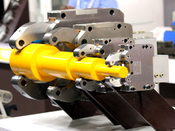 Valami fegyverműszerész az ipse, puskacsövet csinál,a kezével tompítja a remegést az állóbáb mellett a hengeres felületen...