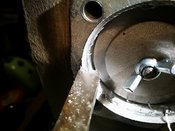 (Az utolsó képen az utolsó pár fogás a lapka keményfém oldalával készült, a kis fényes sarok még a gyémánttal. Érdekes módon a keményfém él is jóval nagyobb erőkifejtést igényelt a kézikerékre...)