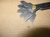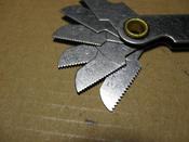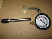 Adott egy belsőégésű motor kompressziómérő műszer. A mérőóra és a szár nem elég hosszú az adott járgányhoz, így egy toldást kellene közéjük gyártsak. A kettejüket összerögzítő menet külső átmérője 10mm, metrikus feliratú menetfésűvel vizsgálva a "27"-es (???) jelzésű illeszkedik bele tökéletesen. Tolómérővel nézve 10 meneten 9.5mm hosszt mérek, a menetemelkedés így 0.95 mm. A mérésem valószínűleg jó, mert ha a fésű "08"-as lapkáját nyomom a menethez, elég rossz az eredmény, az "100"-as feliratú lapka majdnem tökéletes,a "27-es" feliratú viszont teljesen illeszkedik.