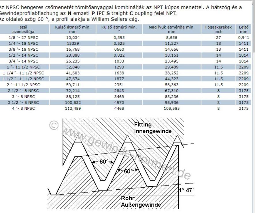 Ez az adataid szerint: NPSC kúpos csőmenet ANSI B 1.20.1-1983(R1992)