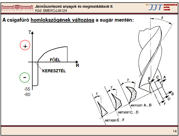 Köszörülés során mindig keletkezik sorja bár ezt szabad szemmel nem látod és ezért szoktam egy (igazából kettő)sorja letörő húzással csinálni... ez a "bejáratást" helyettesíti. Amúgy nem a régi hanem a mostani csigafúrók között is találni széles keresztélű fúrókat. No ezért is szeretem horonyoldalt is köszörülni  és így meg tudom rövidíteni a keresztélt egy cseppet plusz a homlokszögön is módosítok egy keveset. A nem régen közzétett ábrán látszik a metszeteken és persze a görbén is hol érdemes hozzányúlni ill. módosítani.