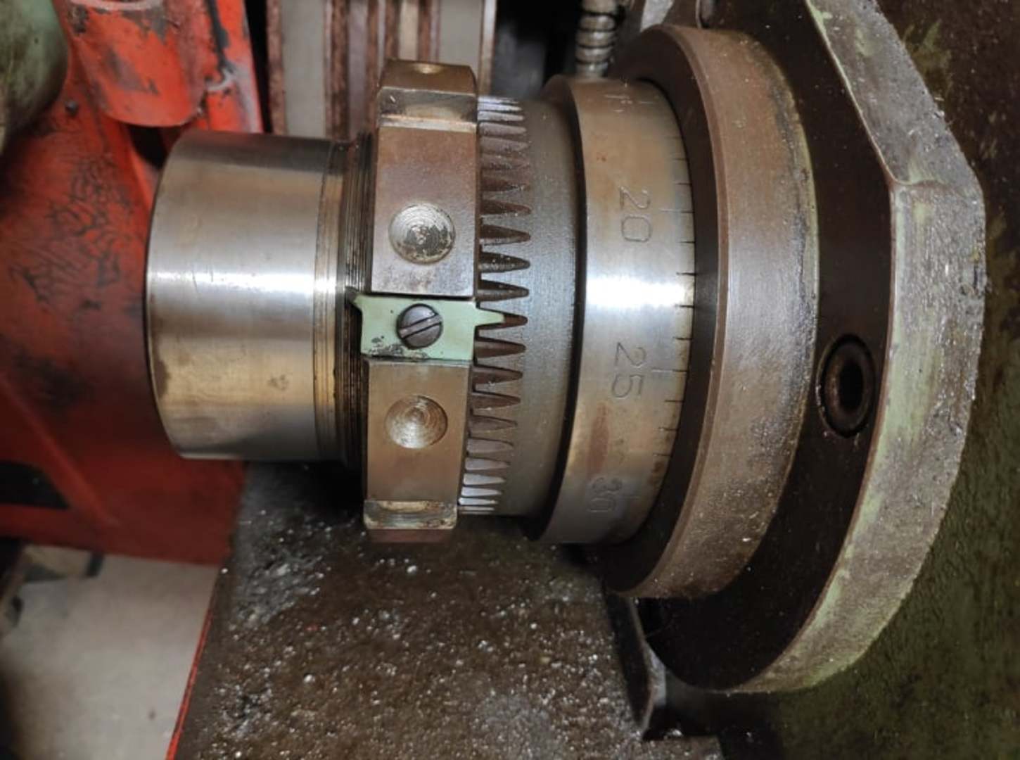 Szerencsére az orosz mesterek annó gondoltak erre problémára. A főorsó túlsó végén levő körmös anyával szépen utána lehetett állítani. Így most nagyon erőltetve van benne 1 század tengelyirányban.