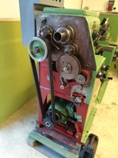 A sebességváltás úgy történik , hogy az 1-es pedált lenyomod és a 2-es karral a laposszíjat átteszed a a tárcsákon forgás közben , majd  a pedált felengeded és feszül a laposszíj.A szíj be van rakva a vezetőbe . A segédtengelyről pedig ékszíjjal hajt fel a főorsóra.A motor kétsebességes dahlander.