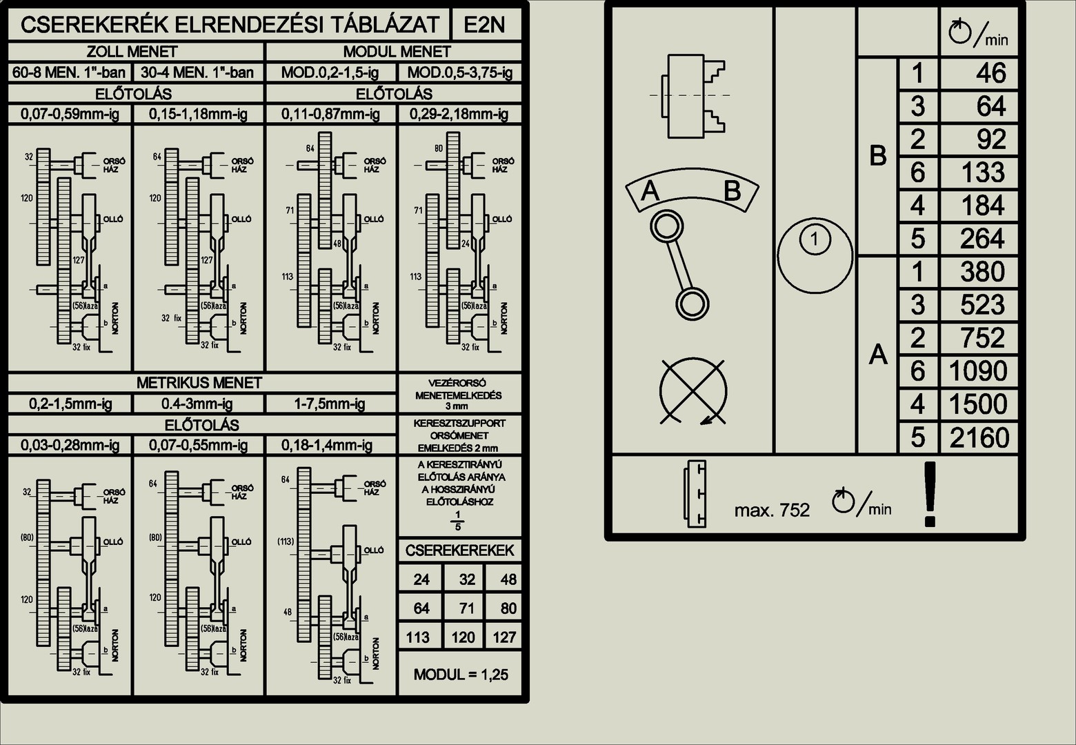 Még annyit, a bal felső metrikus menet, alatta lévő whitworth menet, a legalsó fogaskereket gondolom azért nem írja, mert az a 127-es váltókerék. (ez kiderül a fő táblázatból)
