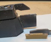 Képen létható egy késtartó, és két fajta lapka. A tartóhoz a közelebbi lapka használható. Nem tudom, honnan került hozzám a távolabbi lapka, amit külön is lefényképeztem, viszont ez magasabb, és ebbe a tartóba nem tudom befogni.