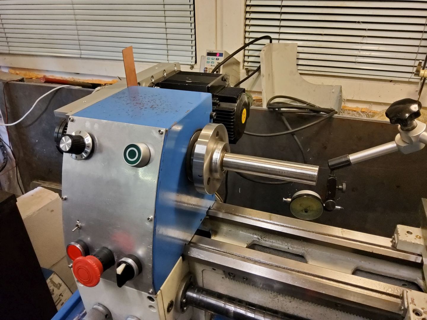 Felraktam egy AC servo motort az esztergámra, a meghajtást lecseréltem bordásszíjra.