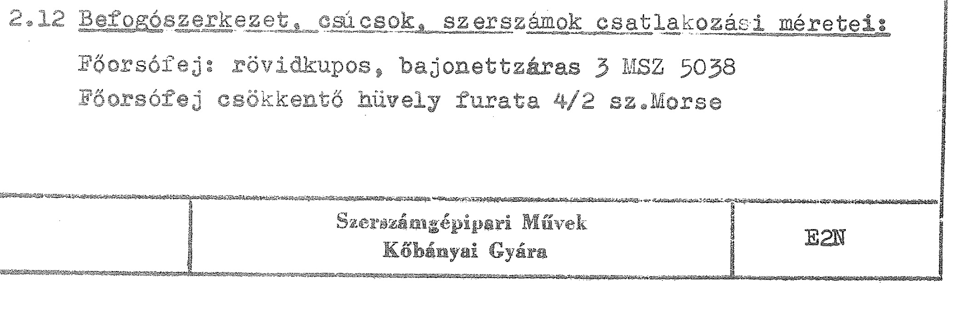Az E2N főorsó belső kúpja (tudtommal)normál Morse 4-es, a főorsófej külső kúpja az a rövid-kúpos..