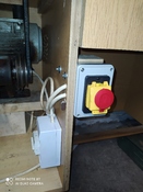 Nálam az E1N-nen a tálca alá van szerelve a vészstop, a gombája a combom magasságában kinyúlik a tálca alól. Még az előző tulaj rakta oda, én meg nem bántottam, mert észszerűnek találtam az elhelyezését. Meg lehetett szokni - eleinte sokszor lekapcsoltam véletlenül darabcsere közben, munka közben viszont egyáltalán nincs útban.