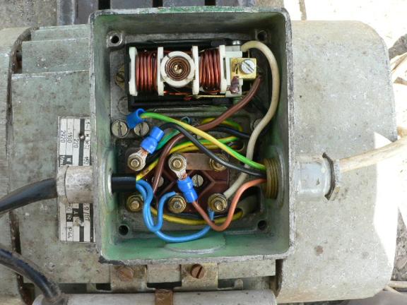 A motor 1 fázisú volt és most is olyan lett. Van a főtekercs, meg a segéd, amin a kondi van (68uF talán?) az indító relével. A tekercselőnél is kiprópáltuk, ha nem lett volna jó valami csak szól. :) (tárcsát nem látta ugyan)