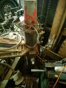 Az előtolás iszonyú terhelést tud rátenni erre az erőkarra az oszloptól számítva, a teherkar viszont rövid, a csúszóház magassága,nem tudom kiszámítani de,itt van erre a feladatra Antal Gábor barátunk, minden képlet a fejében van.