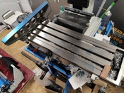 Mivel raklapon van mérni nem sok értelmét láttam, de rátettem a lécet (természetesen meghúztam kővel előtte amit kellett). Hááát.... :D Pontosságról nem tudok nyilatkozni, de ezért fura a festési kép a prizmáknál. A keresztszánt tekerve szintén érződik hogy nem párhuzamosak a prizmák....