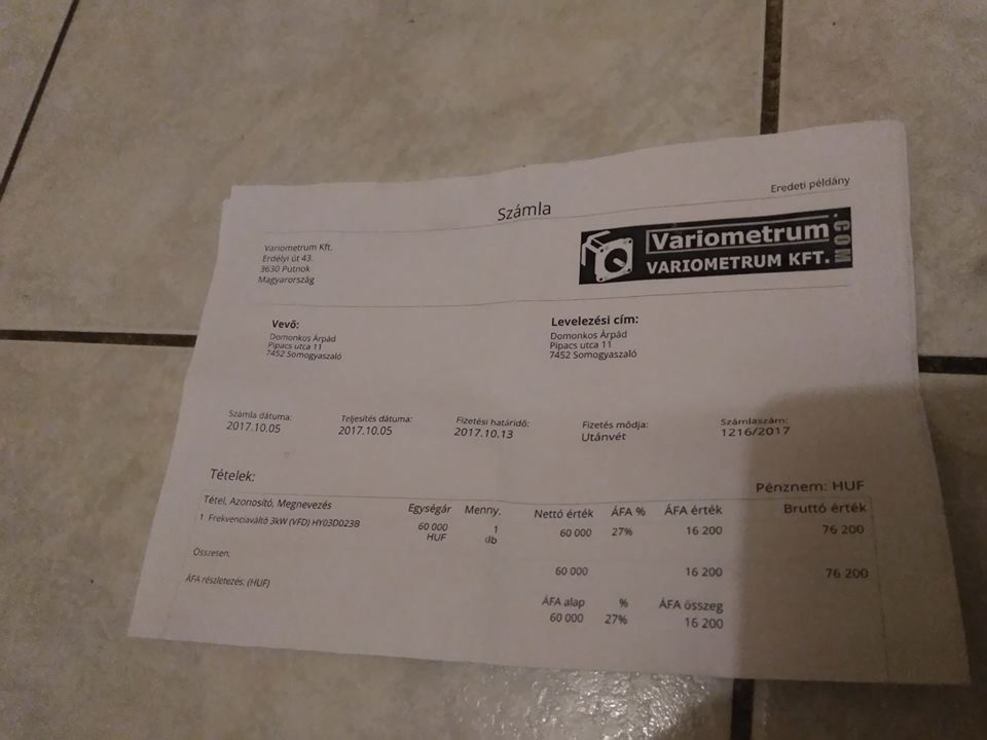 A tervezett gép nem készült el a frekiváltó nem került felhasználásra , eladó sorba került .