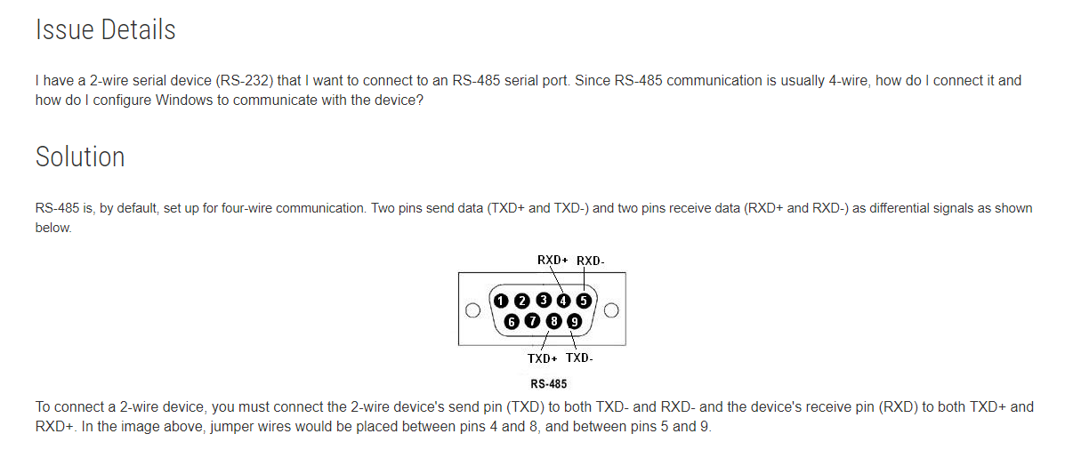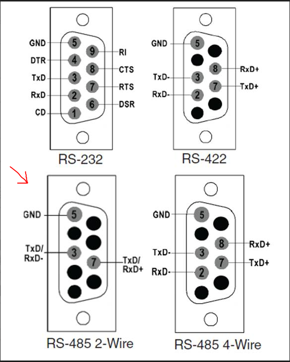 Ez utóbbi lesz a probléma, azaz közösíteni kell az invertáló és nem invertáló vonalakat. Használható leírást csak a National Instrument oldalán találtam. A NET-en volt mindenféle elfajzás. Keverik a 3 protokollt, RS422, RS485, RS232.