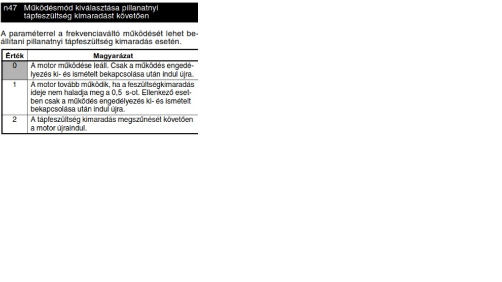 A lényege az, hogy hálózatkimaradás/áramszünet után, ne induljon automatikusan újra a frekiváltóra kötött motor.