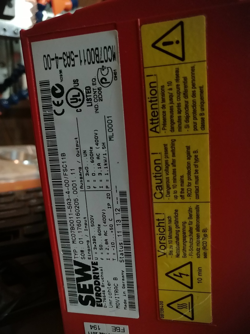 Van egy ilyen 1.1kWos SEW frekiváltóm, tartalék egy percet sem ment de egy kokler exkolléga valami táp javításakor ezt használta donornak és kivette a pufferkondit meg még valami alkatrészt. (Talán varisztor vagy kissebb szurokondi)