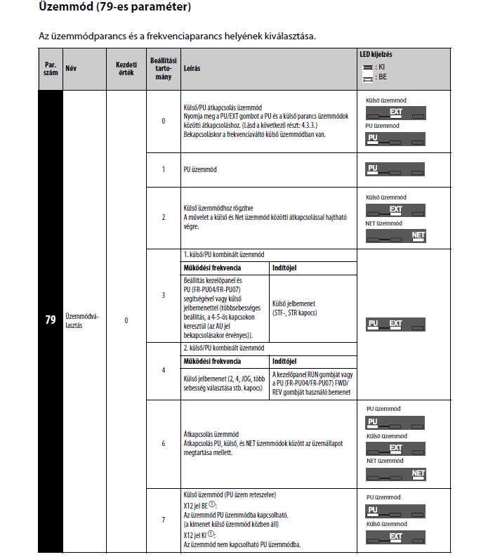 Mitsubishi S-500 frekiváltó,"ext" üzemmódra átváltva.