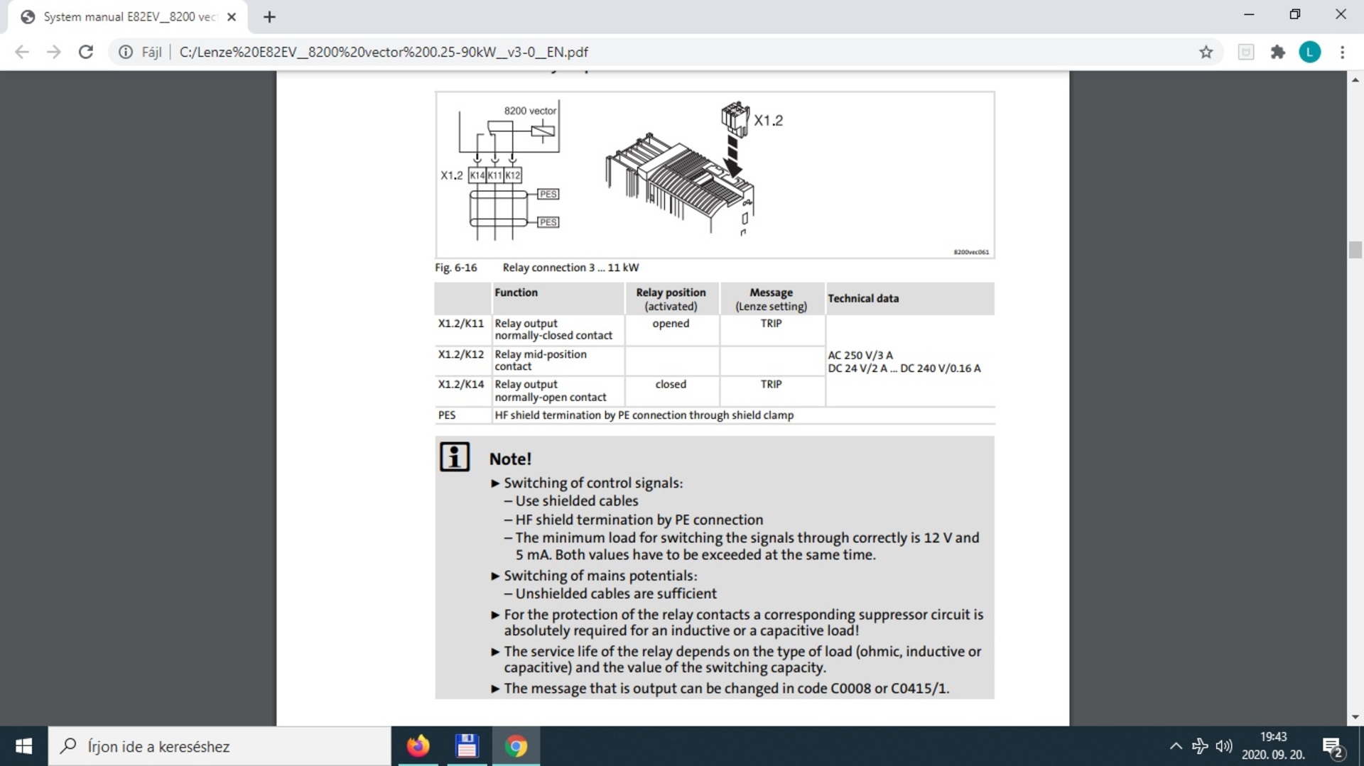 Rákötöttem a Lenze E82EV (8200 vector 7.5 KW ) relés kimenetére az indítást de az meg, nem működik.
