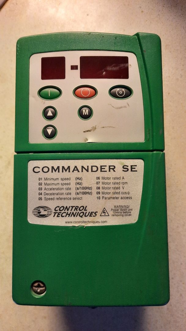Régi LENZE frekiváltó, egy régi présgépben.