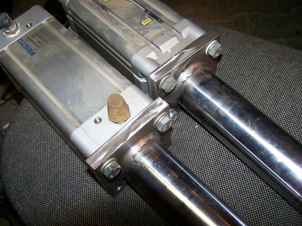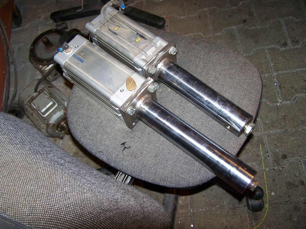 Szerintem nem egy nagy durranás az a hidropneumatikus henger - én így oldottam meg és de a gyári is hasonló volt amit szétszedtem azaz a pneumatika rúdját használja a hidraulikus részen azaz annak a végére van illesztve a dugattyú . Sajnos nekem is 100-as pneumatika kellett volna de csak egy darab volt nekem így 80-asból csináltam . ( Csak ne kellene esztergályoshoz járni - szinte remeg a lábam ha menni kell .)