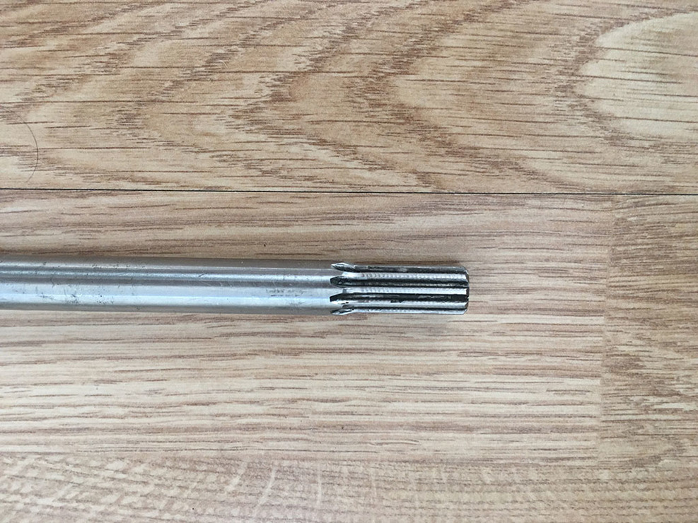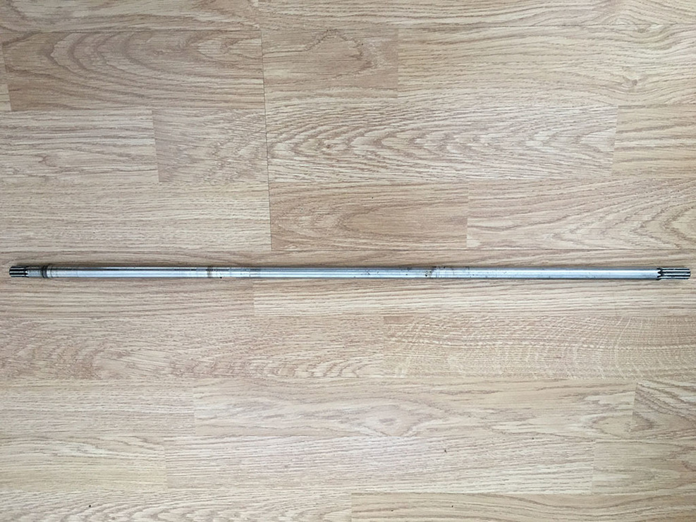 A tengely 1/2" átmérőjű, hossza 630mm, a két végén bordázott és egy ék hely marás van rajta.