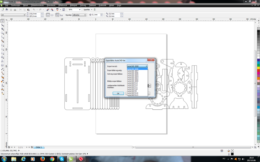 Lehet a Corel-ből .dxf-be nem a legjobb párosítás.
