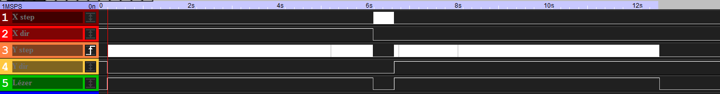 Kipróbáltam én is, és nálam működik. Alábbi képen az UC100 kimenő jeleit látod logikai analizátorral felvéve. Én az első G-kódot futtattam, aminél nálad előjön. El tudod nekem küldeni a profil fájlodat, mert lehet csak bizonyos beállításnál jön elő.