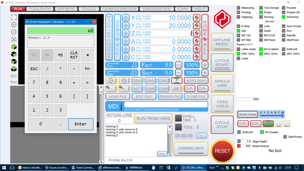 A Mach-ban is tudsz valamennyire műveleteket végezni a DRO-kban, ez egy kicsit többet tud. Itt eltárolhatsz részeredményeket, zárójelezhetsz, használhatod a g-kódban megszokott függvényeket stb.