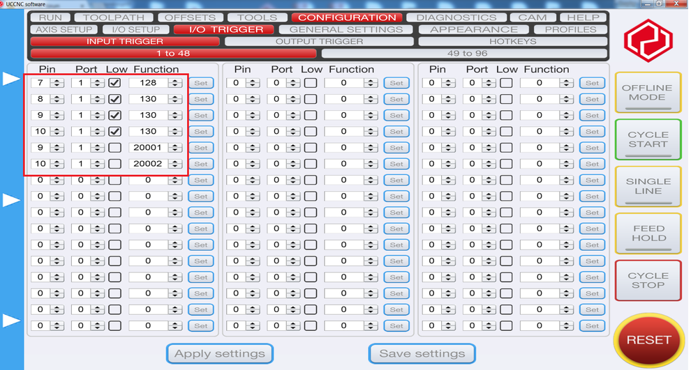 UCCNC vezérlő program