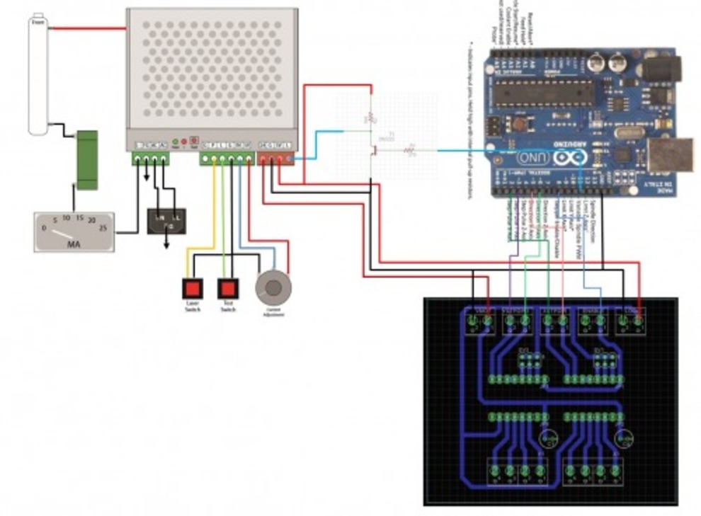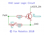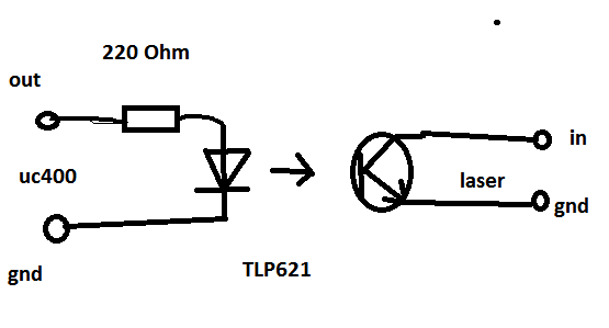 Jelenleg az arduinoval ezzel a tranzisztoros kapcsolással van összekötve a lézer tép L lábára és kész.