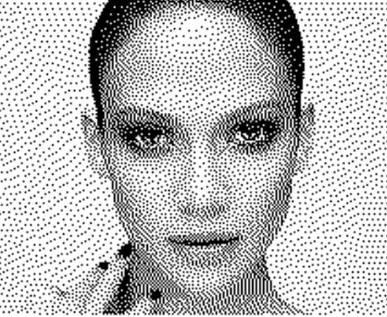 2. A halftone eljárás szerintem mást jelent, mint a mellékelt kép. A kép ugyanis egy 1 bites szürkeárnyalatot mutat (pl. Stucki algoritmusút a sok közül). Így erősen kérdéses, hogy helyes-e az elnevezés használata a programban ennél a módszernél.