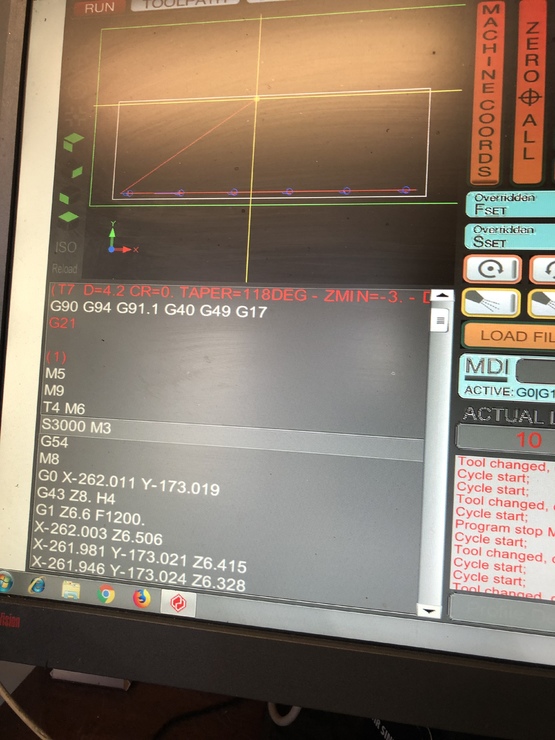 Valamint a software csinál nèha olyat is hogy egy teljesen ellenkező irányban elindul szerszámcsere után, hál istennek nem törik semmi de ez is idegesitő valamint bukom a ciklust...pedig nincs is olyan koordinata a g-code ban.Legtobbszor akkor fordul elo ha korrekciozom a szerszamtarban a magassagot es nem is azét amelyik el csinálja...