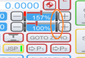 Az M50/M51 párossal lehet ki-/bekapcsolni, hogy a sebesség vagy a főorsó fordulatszám az FRO/SRO értékkel felülbírálható-e. Ha tiltva van a felülbírálat, akkor a hosszú LED pilácsol a megfelelő mező mellett.