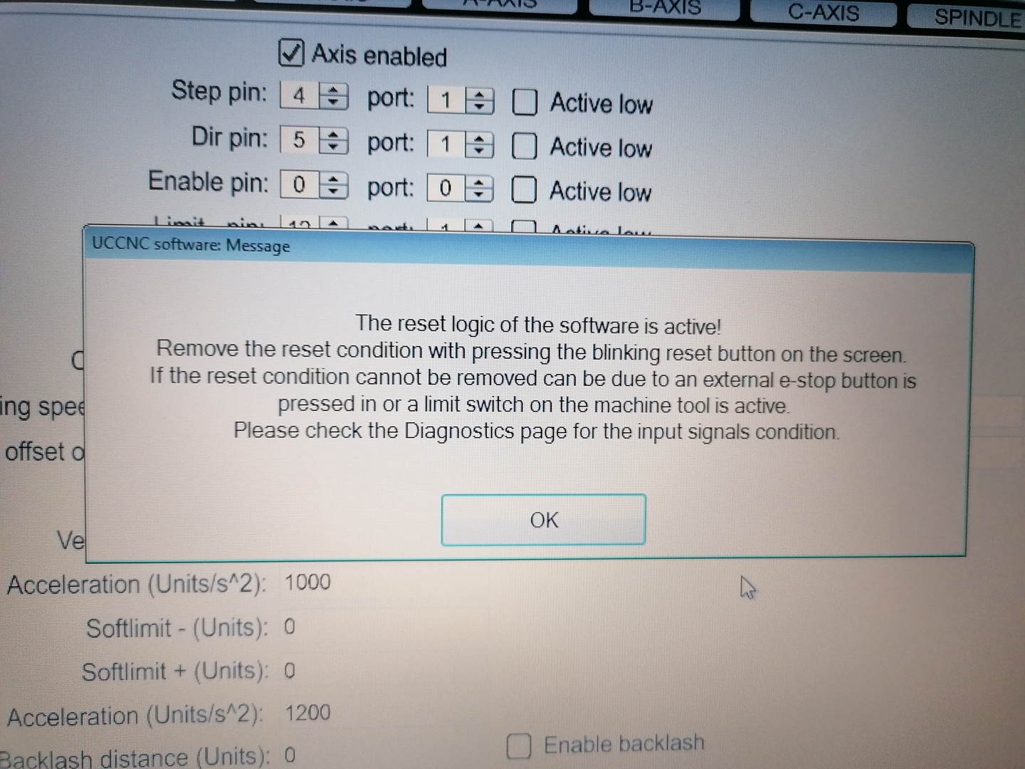 Ez a panel nem használja az említett tápot a motor kimenetekhez, csak az oldalsó bemenetekhez. Tehát a kérdés továbbra is az, hogy ég-e a pilács, megvan-e a 12-24V-os táp? Azért nem engedi oldani a reset-et, mert az e-stop és/vagy valamelyik limit jel aktív.