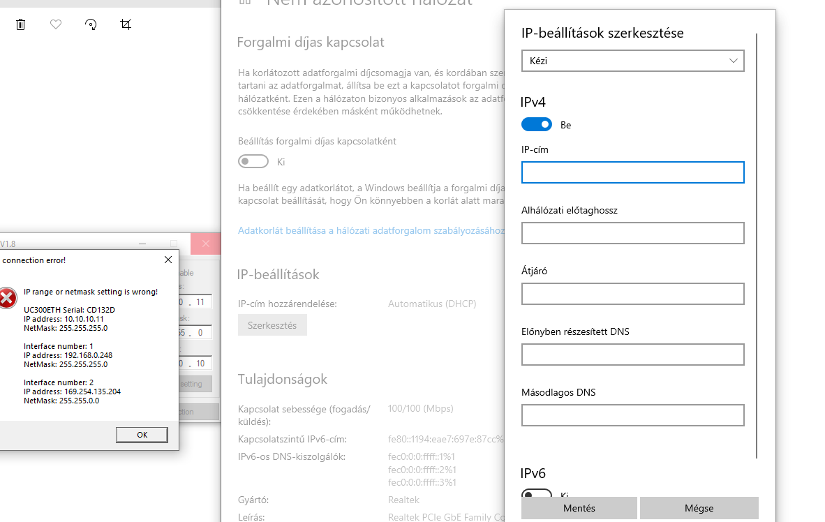 Van egy wifid, amivel eléred a netet és van egy hálókártyád, ami megy az UC300-hoz? Ha igen, akkor a hálókártyádat be kell állítani pl. IP 10.10.10.10 / maszk 255.255.255.0 címre és menni fog.