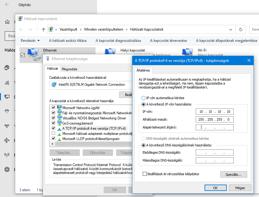 Csak arra figyelj, hogy melyik kártyát állítod: a wifit hagyd békén, a vezetékest állítsd.